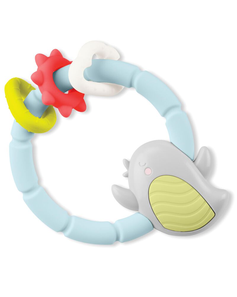 我們甜美的小鳥設計將牙膠玩具和撥浪鼓合而為一,讓小牙膠忙碌而快樂。柔軟的矽膠材質,具有適合出牙的紋理表面,加上撥浪鼓和易於抓握的形狀,為寶寶增添了額外的感官遊戲。