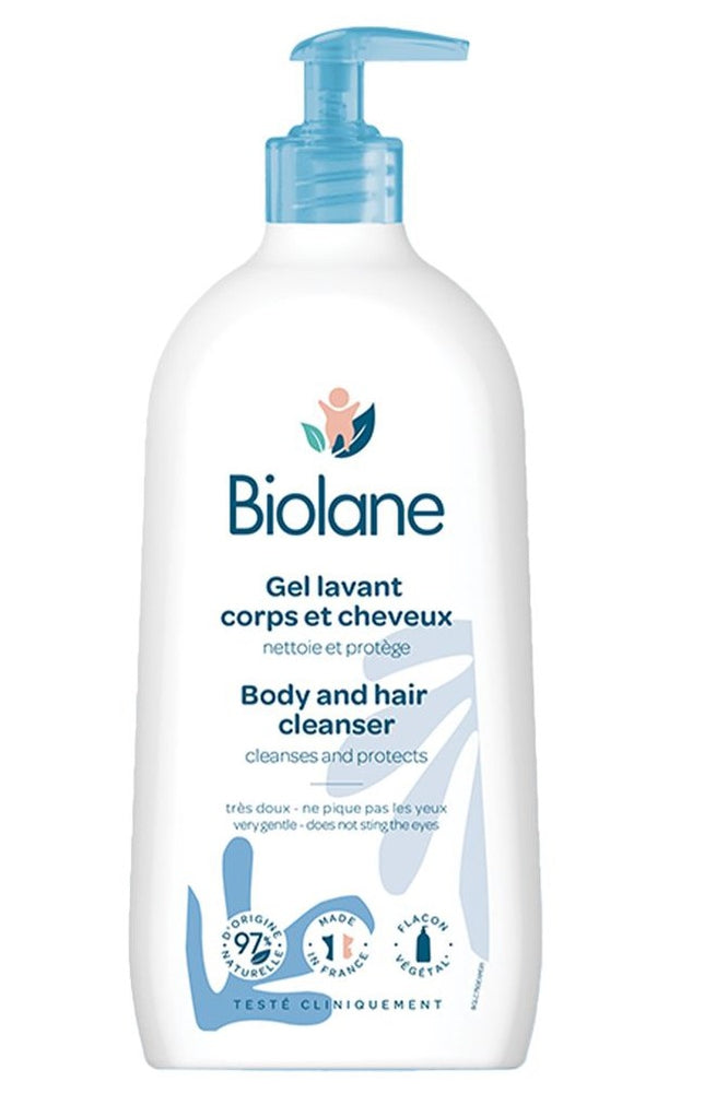 BIOLANE 二合一身體和頭髮清潔劑可一步清潔嬰兒脆弱的皮膚和細毛。保證不含皂,其非常溫和的清潔基底可以清潔而不乾燥,並保護皮膚的天然平衡。