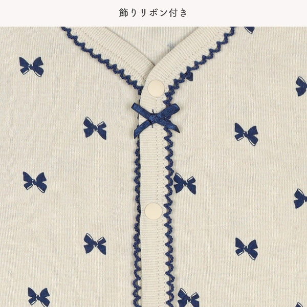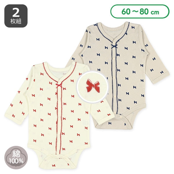 西松屋冬季前開長袖連身衣2件(蝴蝶結藍色/紅色)