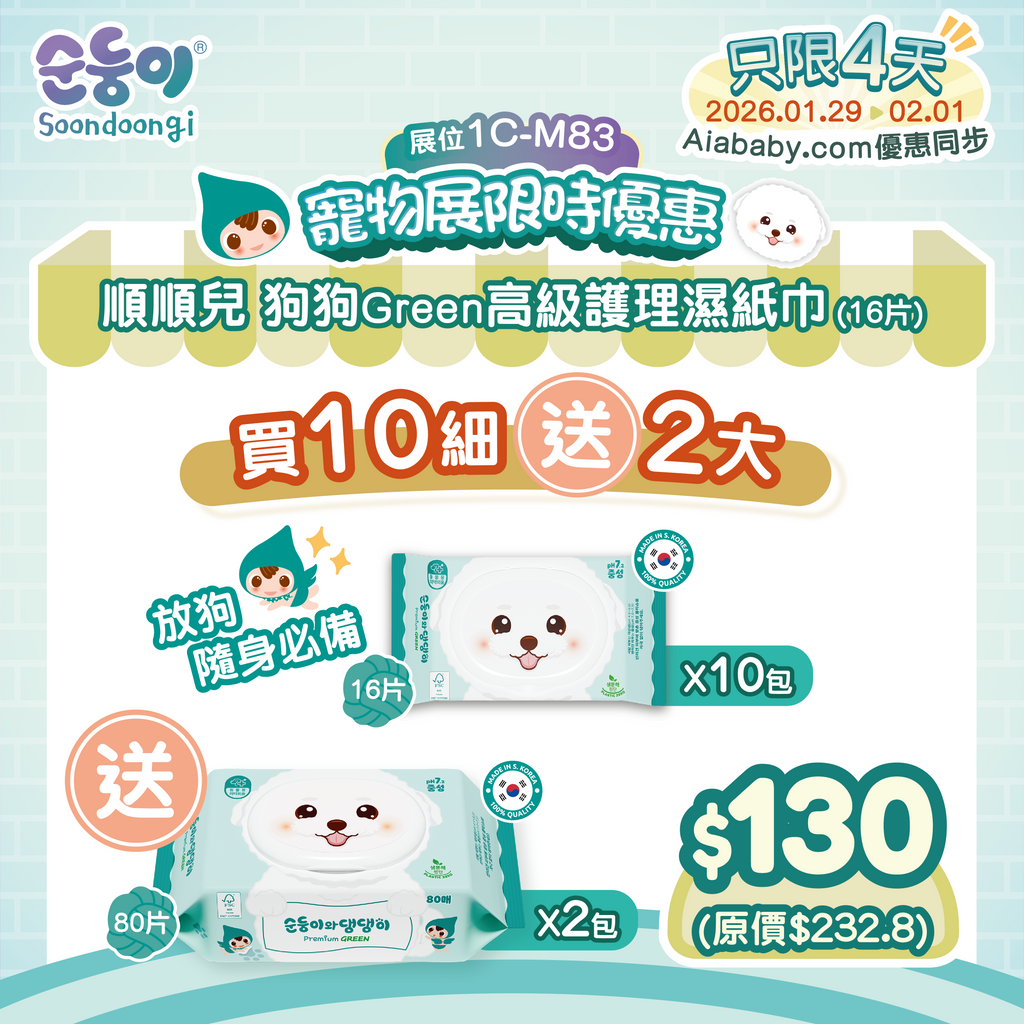 『順順兒』狗狗 Green 高級護理濕紙巾 (16片) - 10包送2大 (fair)