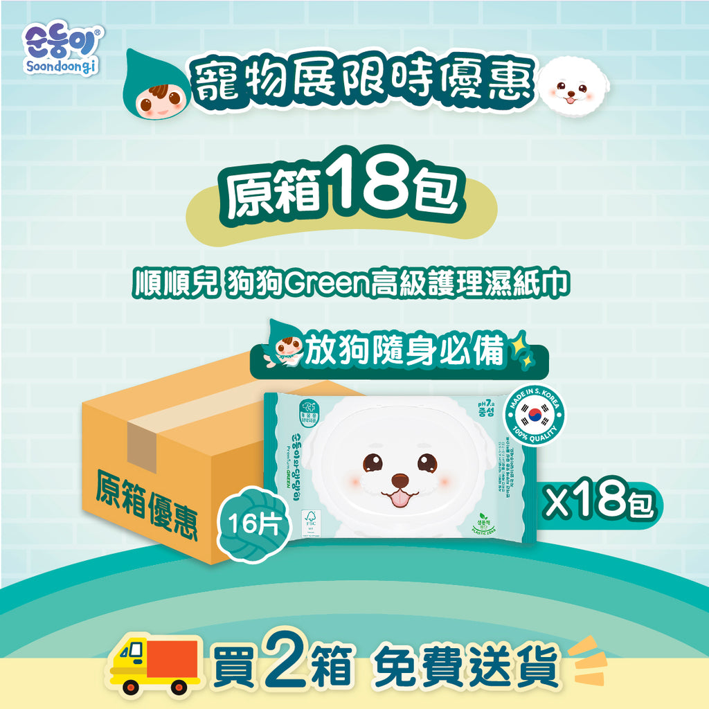 『順順兒』狗狗 Green 高級護理濕紙巾 (16片) - 18包 (fair)